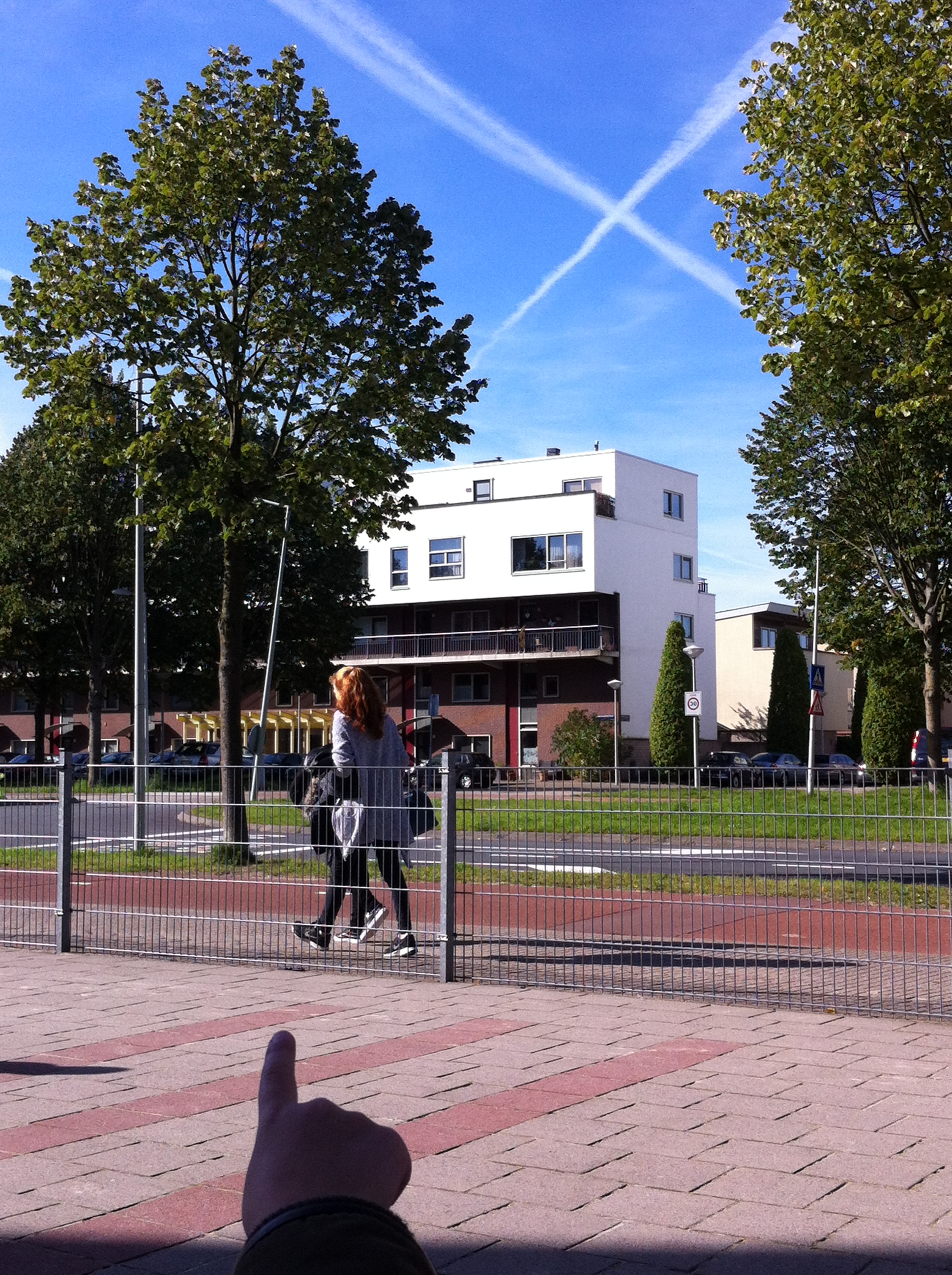 Vandaag echter hing het in de lucht. En het was druk in de lucht. Van achter de kantoorpanden naast ons schoolplein zagen we vanaf Schiphol vliegtuigen opstijgen. Hoog in de (koude) lucht trokken andere vliegtuigen steeds opnieuw lange strepen.
