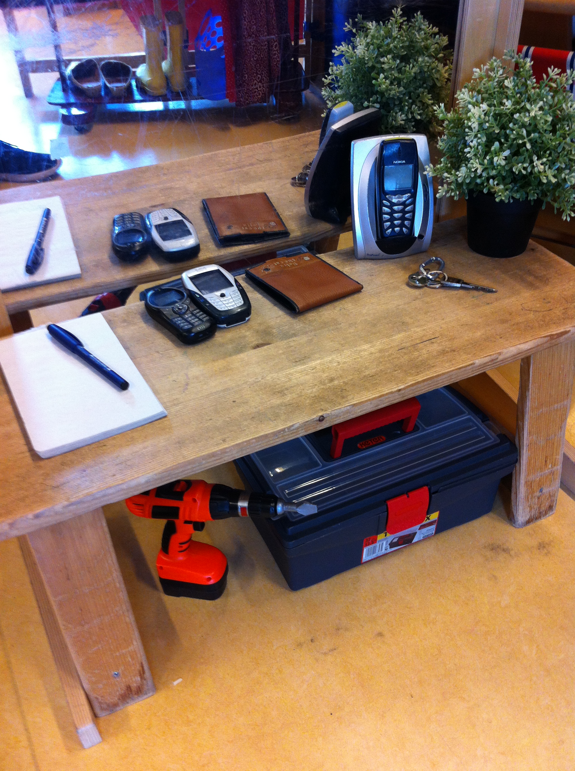 IMG_3289 Gepubliceerd 18 september 2015 op 1936 × 2592 in Het huis aan kant. « Vorige Volgende » De ‘sidetable’ in de hal. Met natuurlijk de telefoons. En huissleutels, portemonnee en schrijfblok. Onder het tafeltje gereedschap voor de doe-het-zelver’.