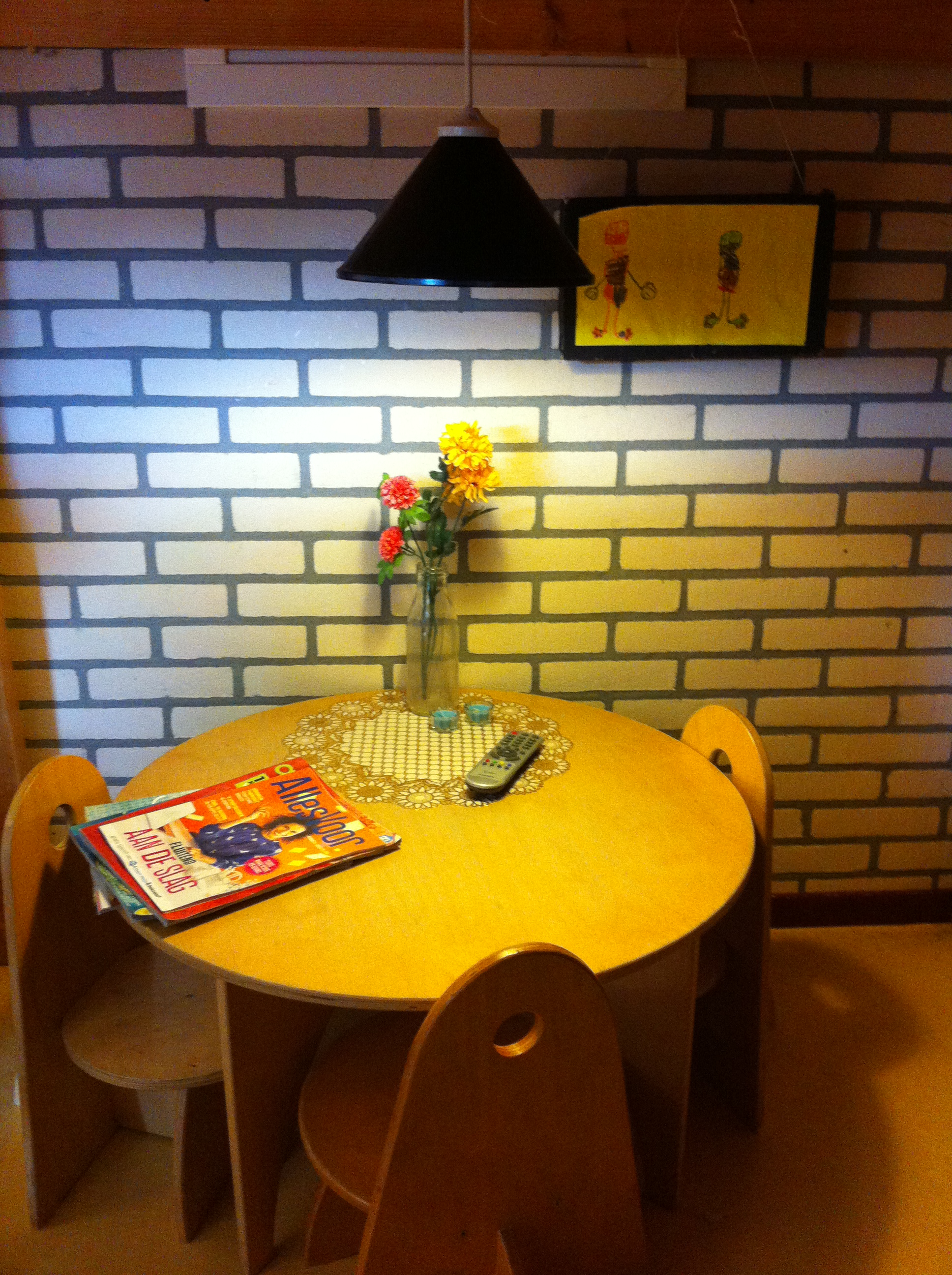 IMG_3291 Gepubliceerd 18 september 2015 op 1936 × 2592 in Het huis aan kant. « Vorige Volgende » De eettafel, met bloemen en kleedje, de Allerhande en de afstandsbediening. De tv hangt rechts aan de muur.